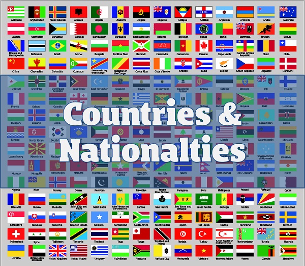 [Note: This countries and nationalities vocabulary pronunciation is in American English]